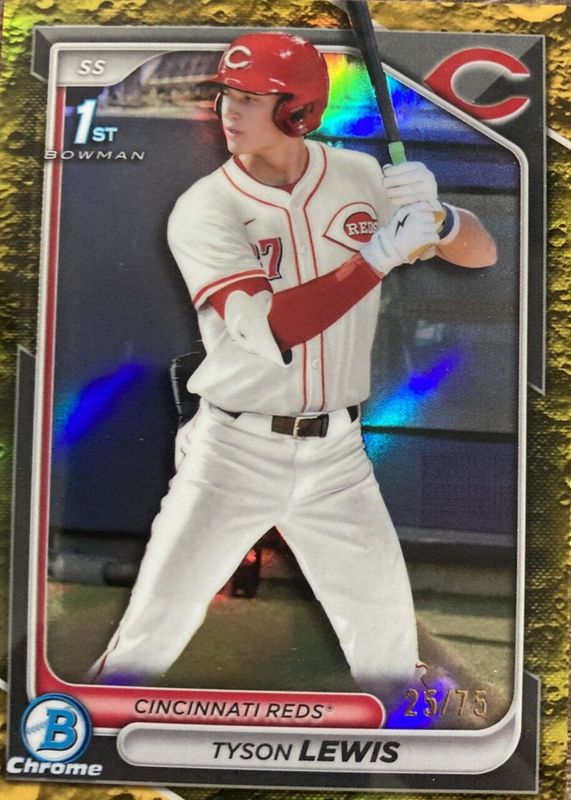 2024 Bowman Draft #BDC-44 Tyson Lewis 1st Chrome Yellow Lunar Refractor /75 Reds