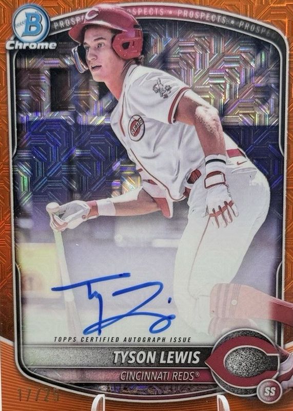 Tyson Lewis 2025 Bowman Mega Box #BMA-TLE Chrome Prospect Auto - Orange Refractor /25 RAW Price Guide