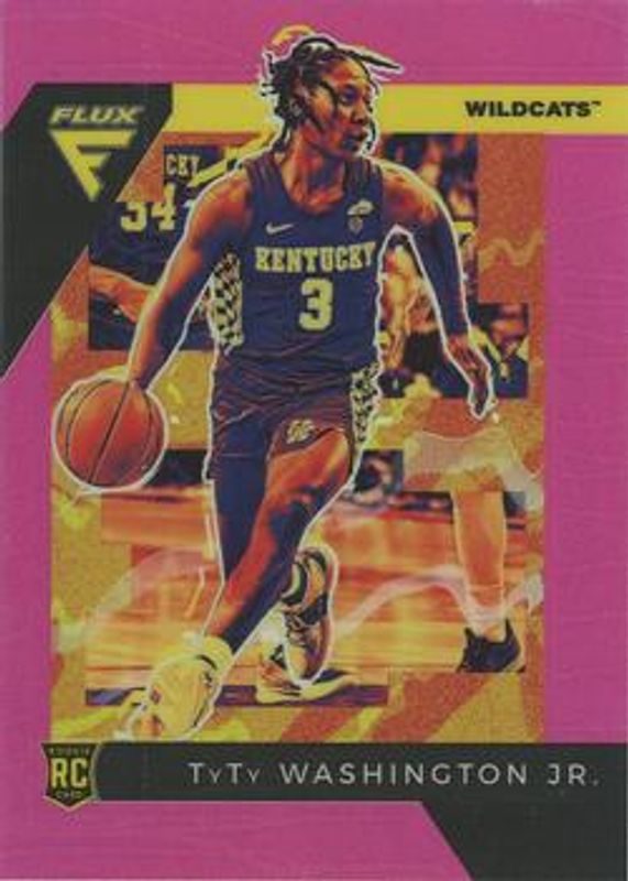 The TyTy Washington Jr. 2022 Chronicles Draft Picks #10 Flux - Pink Rookie card is 1 of 137 TyTy Washington Jr.'s card variations in the 2022 Chronicles Draft Picks set being tracked by Sports Card Investor, including Base, Black, Bronze, Pink, and Pulsar.
