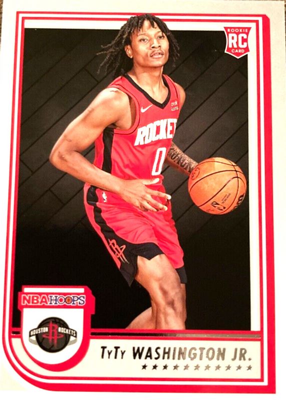 The TyTy Washington Jr. 2022 Hoops #258 Red Back Rookie card in Raw condition has not changed in price in the last 30 days and was last sold for $2.00 .