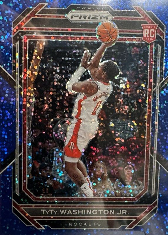 The TyTy Washington Jr. 2022 Prizm #243 Blue Sparkle /144 Rookie card in Raw condition has not changed in price in the last 30 days and was last sold for $1.99 .