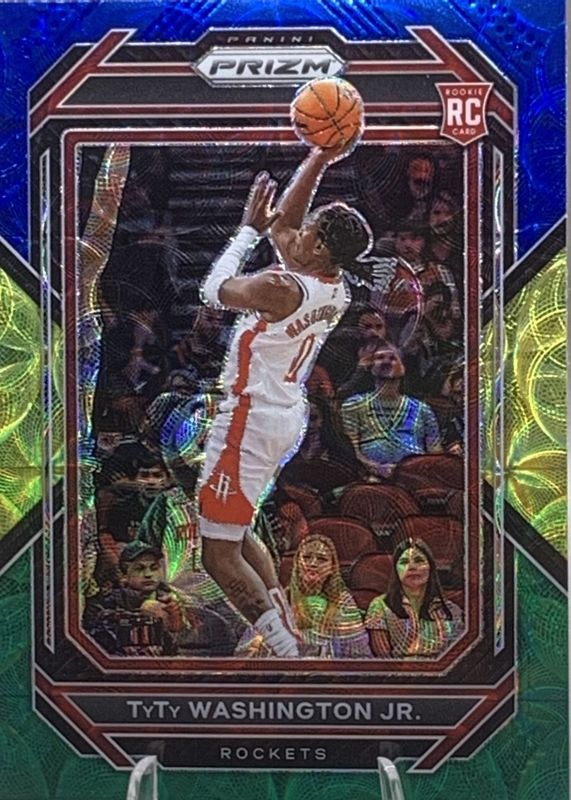 The TyTy Washington Jr. 2022 Prizm #243 Choice Blue Yellow Green Rookie card in Raw condition has not changed in price in the last 30 days and was last sold for $6.74 .