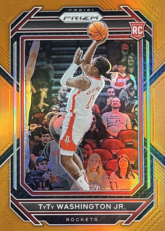 The TyTy Washington Jr. 2022 Prizm #243 Orange /49 Rookie card in Raw condition has not changed in price in the last 30 days and was last sold for $16.50 .