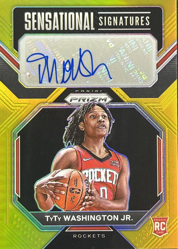 The TyTy Washington Jr. 2022 Prizm #SS-TY Sensational Signatures - Gold /10 Rookie card in Raw condition has not changed in price in the last 30 days and was last sold for $53.00 .