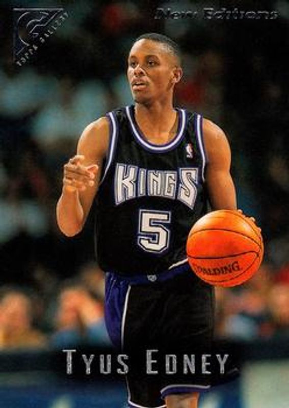 The Tyus Edney 1995 Topps Gallery #38 Base Rookie card is 1 of 2 Tyus Edney's card variations in the 1995 Topps Gallery set being tracked by Sports Card Investor, including Player's Private Issue.