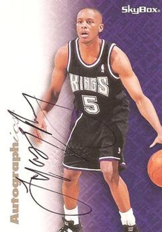 The Tyus Edney 1996 Hoops Autographics Black Ink card is 1 of 4 Tyus Edney's card variations in the 1996 Hoops set being tracked by Sports Card Investor, including Base, Rookie Headliners, and Autographics Blue Ink.