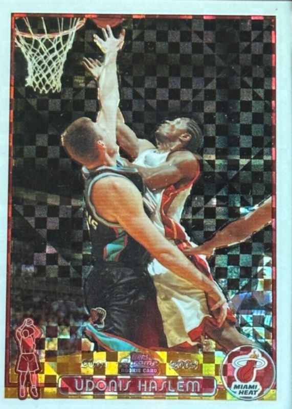 The Udonis Haslem 2003 Topps Chrome #164 X-Fractor /220 Rookie card in Raw condition has not changed in price in the last 30 days and was last sold for $79.99 .