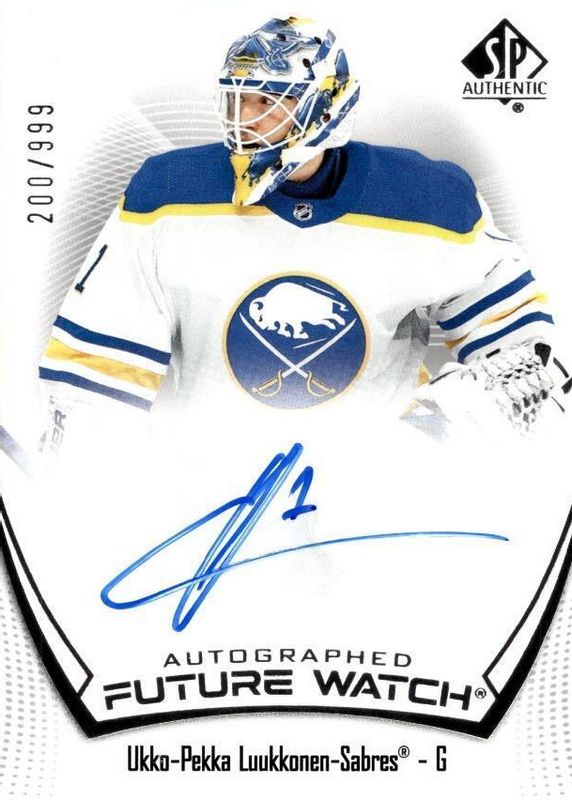 The Ukko-Pekka Luukkonen 2021 SP Authentic #114 Future Watch Auto /999 Rookie card in Raw condition has moved up $25.12 (+394%) in the last 30 days and was last sold for $31.50 .