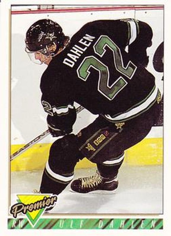 The Ulf Dahlen 1993 Topps Premier #75 Base card is 1 of 2 Ulf Dahlen's card variations in the 1993 Topps Premier set being tracked by Sports Card Investor, including Gold.