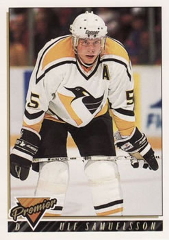 The Ulf Samuelsson 1993 Topps Premier #132 Base card is 1 of 2 Ulf Samuelsson's card variations in the 1993 Topps Premier set being tracked by Sports Card Investor, including Gold.