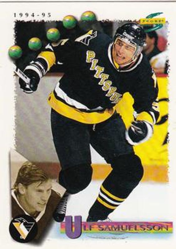 The Ulf Samuelsson 1994 Score #156 Base card is 1 of 5 Ulf Samuelsson's card variations in the 1994 Score set being tracked by Sports Card Investor, including Gold Line, Gold Line - Punched, Platinum, and Check It.