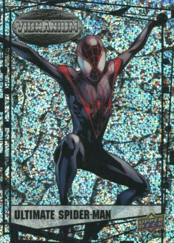 This card is 1 of 6 Ultimate Spider-Man's card variations in the 2015 Upper Deck Marvel Vibranium set being tracked by Sports Card Investor, including Base, Molten Vibranium /299 (Miles Morales), Refined Vibranium /99, Radiance Vibranium /50, and Vibranium Bar /5.