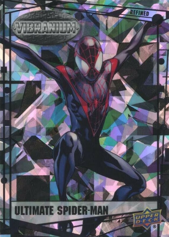 This card is 1 of 6 Ultimate Spider-Man's card variations in the 2015 Upper Deck Marvel Vibranium set being tracked by Sports Card Investor, including Base, Raw Vibranium, Molten Vibranium /299 (Miles Morales), Radiance Vibranium /50, and Vibranium Bar /5.