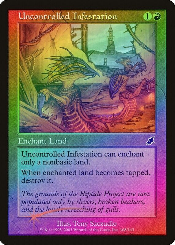 The Uncontrolled Infestation 2003 Scourge #108 Foil card in Raw TCG (Lightly Played) condition has not changed in price in the last 30 days and was last sold for $0.99 .