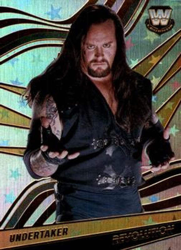 The Undertaker 2022 Revolution WWE #115 Astro card is 1 of 25 Undertaker's card variations in the 2022 Revolution WWE set being tracked by Sports Card Investor, including #133 Base, #115 Base, #133 Astro, #133 Fractal, and #115 Fractal.