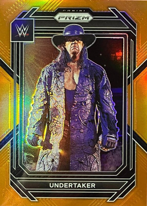 The Undertaker 2023 Prizm WWE #172 Orange /99 card in Raw condition has not changed in price in the last 30 days and was last sold for $16.00 .