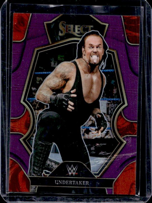The Undertaker 2023 Select WWE #152 Purple /99 card is 1 of 90 Undertaker's card variations in the 2023 Select WWE set being tracked by Sports Card Investor, including #71 Base, #305 Base, #226 Base, #152 Base, and #71 Orange Flash.