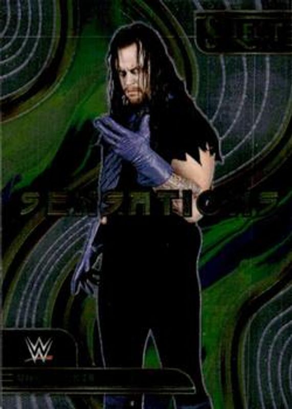 The Undertaker 2023 Select WWE #26 Sensations card is 1 of 90 Undertaker's card variations in the 2023 Select WWE set being tracked by Sports Card Investor, including #71 Base, #305 Base, #226 Base, #152 Base, and #71 Orange Flash.
