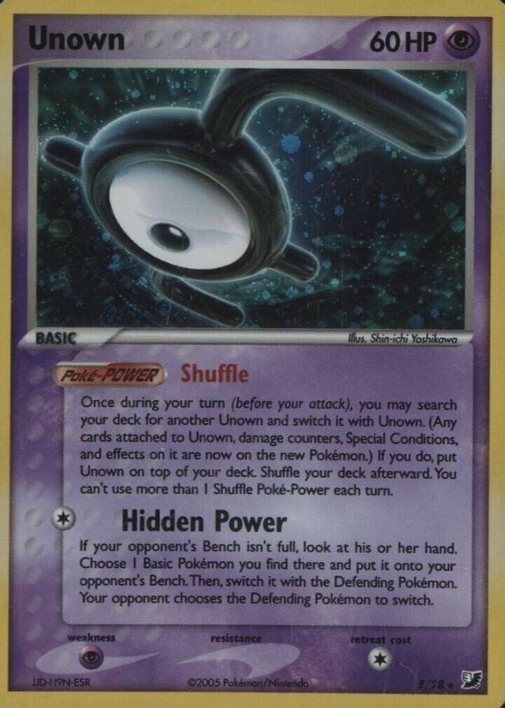 Unown 2005 EX: Unseen Forces #E/28 Holo RAW TCG (NEAR MINT) Price Guide
