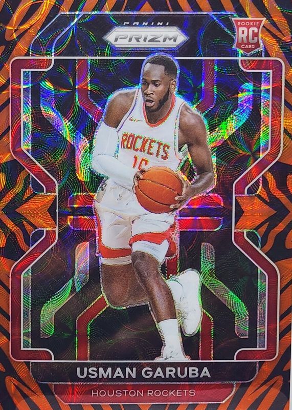 The Usman Garuba 2021 Prizm #321 Choice Tiger Stripe /(SSP) Rookie card in Raw condition has not changed in price in the last 30 days and was last sold for $120.00 .