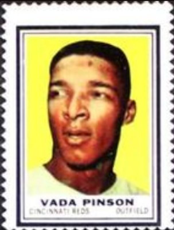 The Vada Pinson 1962 Topps #NNO Stamps card is 1 of 2 Vada Pinson's card variations in the 1962 Topps set being tracked by Sports Card Investor, including Base.