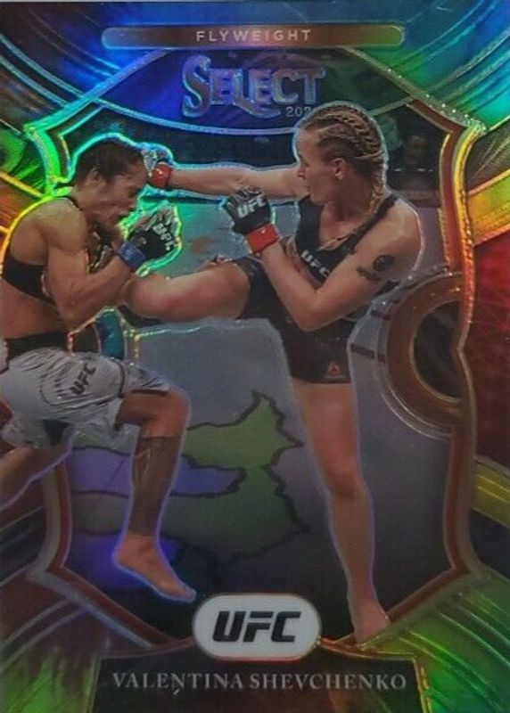 This card is 1 of 50 Valentina Shevchenko's card variations in the 2021 Select UFC set being tracked by Sports Card Investor, including Concourse Disco, Concourse Scope, Concourse Silver, Concourse Tri-Color, and Global Icons - Silver.