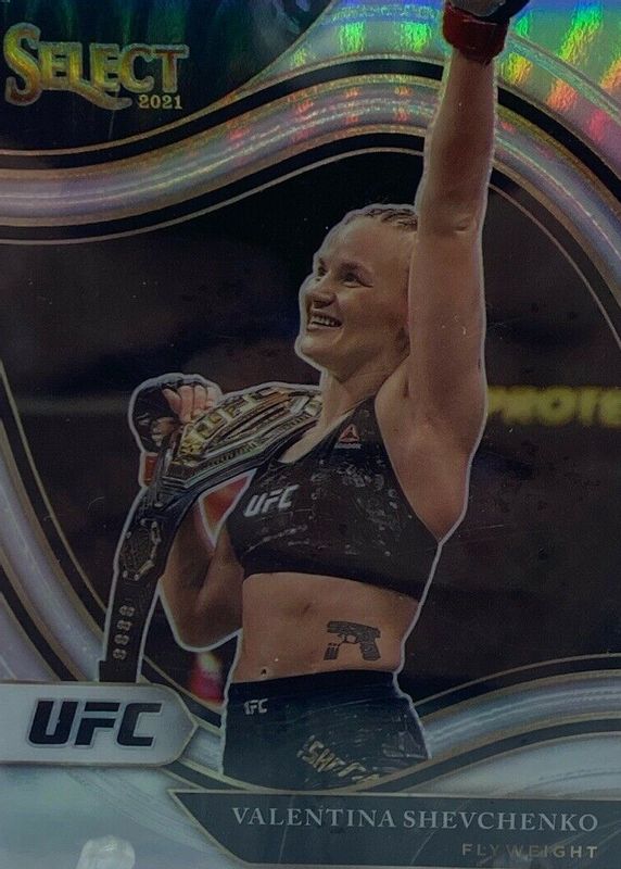 This card is 1 of 50 Valentina Shevchenko's card variations in the 2021 Select UFC set being tracked by Sports Card Investor, including Concourse Disco, Concourse Scope, Concourse Silver, Concourse Tri-Color, and Global Icons - Silver.