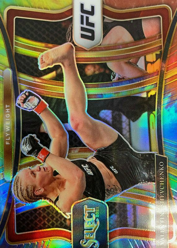 This card is 1 of 50 Valentina Shevchenko's card variations in the 2021 Select UFC set being tracked by Sports Card Investor, including Concourse Disco, Concourse Scope, Concourse Silver, Concourse Tri-Color, and Global Icons - Silver.