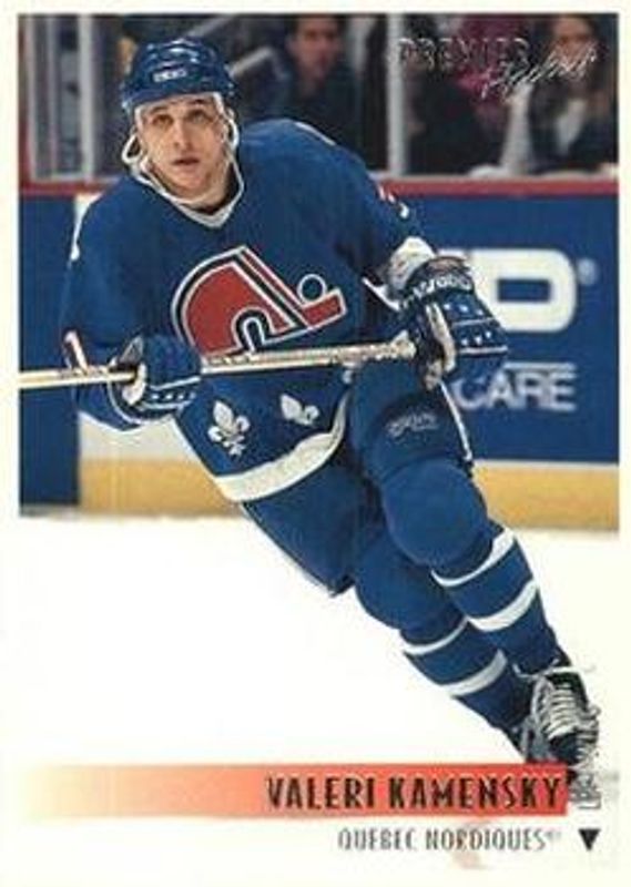 The Valeri Kamensky 1994 Topps Premier #32 Base card is 1 of 2 Valeri Kamensky's card variations in the 1994 Topps Premier set being tracked by Sports Card Investor, including Special Effects.