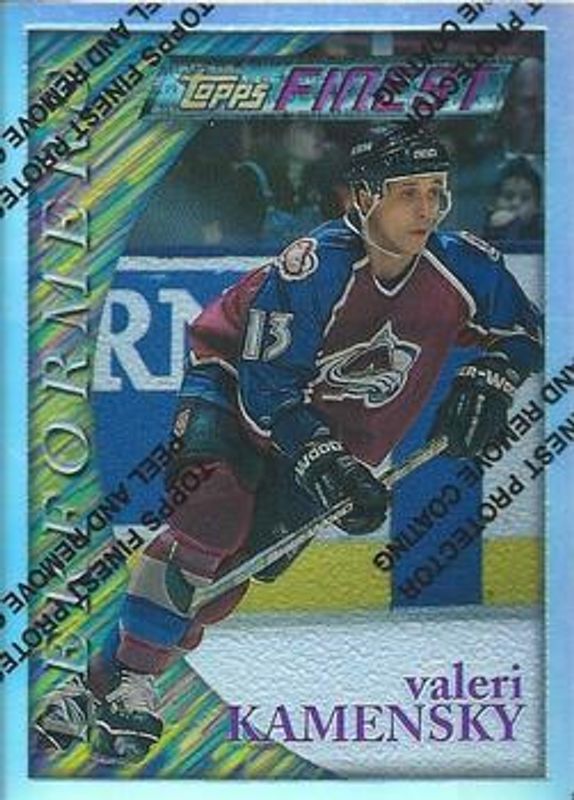 The Valeri Kamensky 1995 Topps Finest #164 Refractor card is 1 of 2 Valeri Kamensky's card variations in the 1995 Topps Finest set being tracked by Sports Card Investor, including Base.