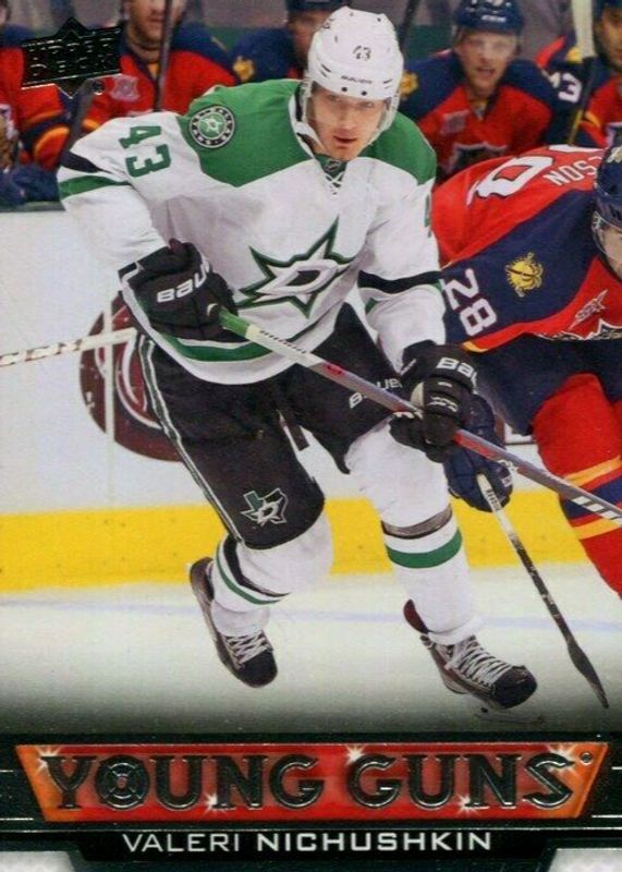 The Valeri Nichushkin 2013 Upper Deck #236 Young Guns Base Rookie card in Raw condition has moved down -$3.51 (-73.7%) in the last 30 days and was last sold for $1.25 .