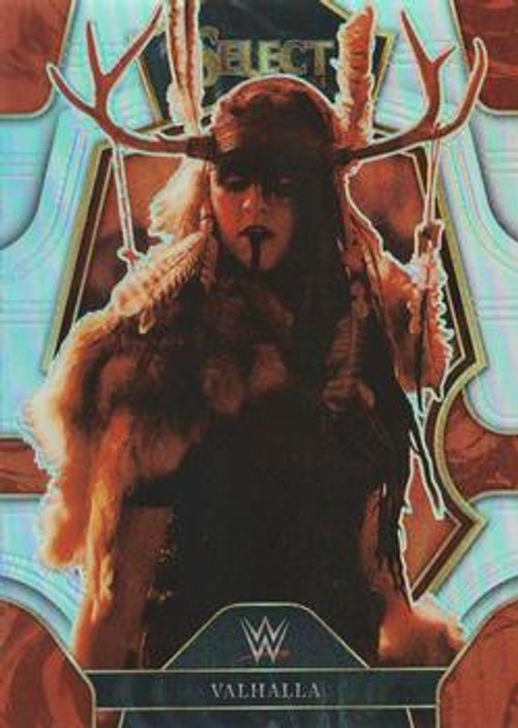 The Valhalla 2023 Select WWE #185 Silver card is 1 of 34 Valhalla's card variations in the 2023 Select WWE set being tracked by Sports Card Investor, including Base, Orange Flash, Red & Blue, Red Wave, and Silver Die-Cut.