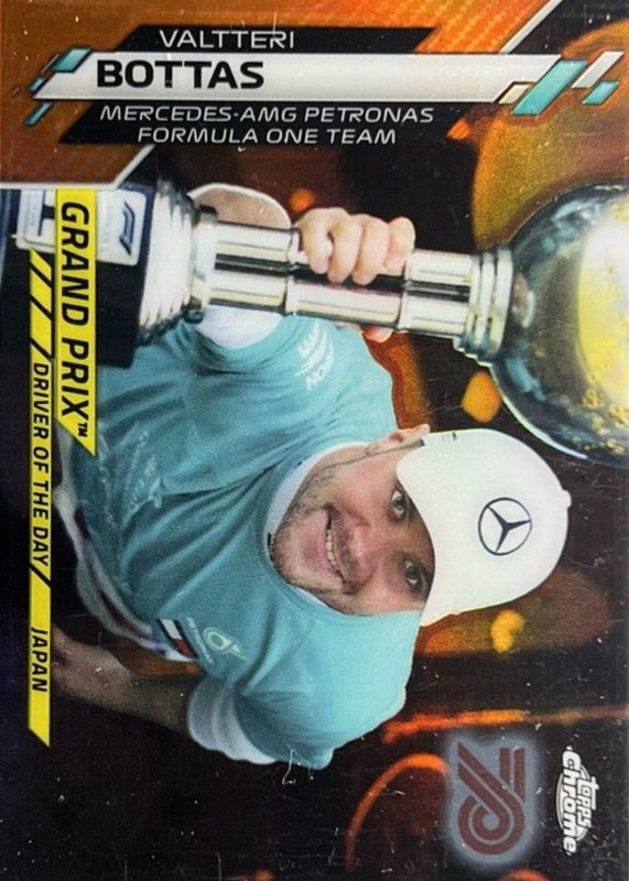 The Valtteri Bottas 2020 Topps Chrome Formula 1 #170 Grand Prix Driver of the Day - 70th Anniversary Orange Refractor (Japan) Rookie card in Raw condition has not changed in price in the last 30 days and was last sold for $14.50 .