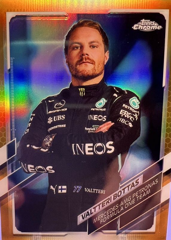 The Valtteri Bottas 2021 Topps Chrome Formula 1 #2 Gold Refractor /50 card in Raw condition has not changed in price in the last 30 days and was last sold for $39.90 .