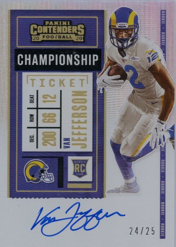 Van Jefferson's Football cards are available in at least 11 sets. Van Jefferson's biggest 7-day price movers are 2020 Immaculate #128 Rookie Patch Auto - Gold /25, 2020 Select #371 Field Level Purple Die-Cut, and 2020 Select #271 Club Level Cosmic /(SSP).