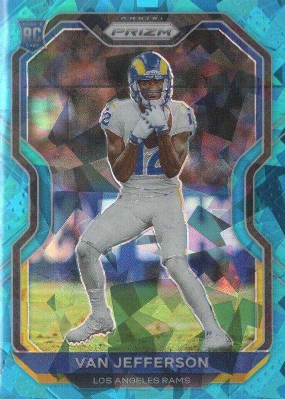 2020 Panini Prizm 377 Van Jefferson Rookie Prizm Blue Ice #/99 RC Cracked Ice