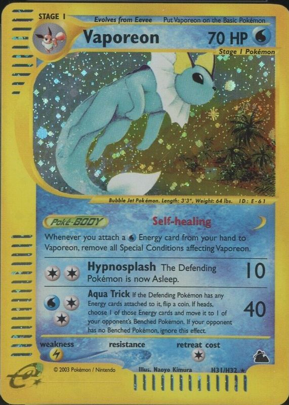 Vaporeon 2003 Skyridge #H31 Holo RAW TCG (LIGHTLY PLAYED) Price Guide