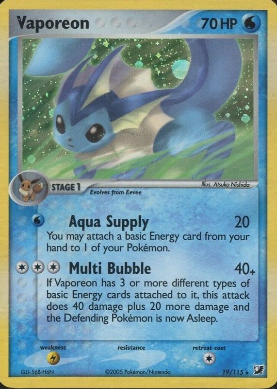 Vaporeon 2005 EX: Unseen Forces #019/115 Holo RAW TCG (NEAR MINT) Price Guide