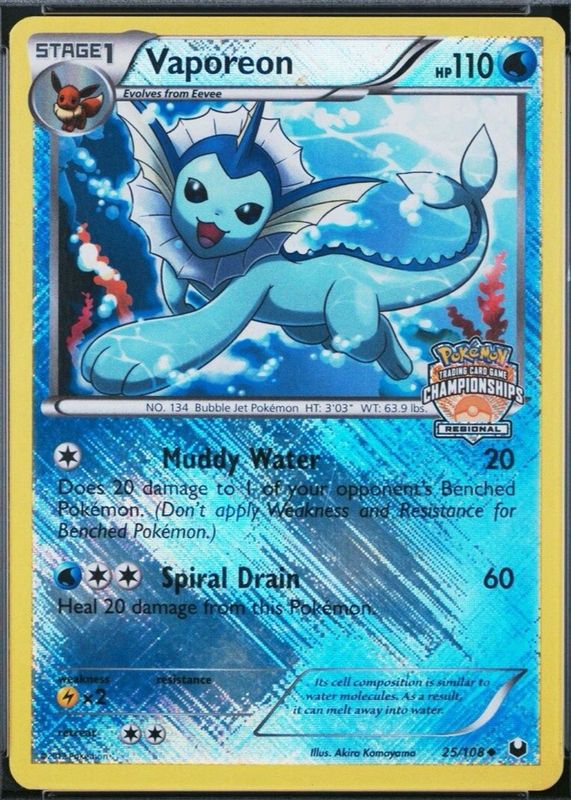 Vaporeon 2012 Black & White: Dark Explorers #025/108 Promo (Regional Championships) RAW TCG (MODERATELY PLAYED) Price Guide
