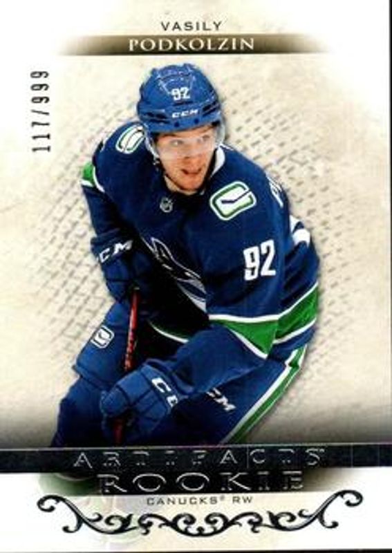 The Vasily Podkolzin 2021 Upper Deck Artifacts #RED209 Base /999 Rookie card is 1 of 2 Vasily Podkolzin's card variations in the 2021 Upper Deck Artifacts set being tracked by Sports Card Investor, including Emerald /99.