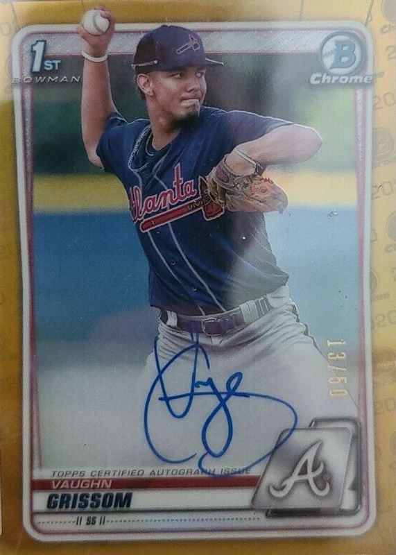 Vaughn Grissom's Baseball cards are available in at least 31 sets. Vaughn Grissom's biggest 7-day price movers are 2020 Bowman Chrome #CPA-VG Prospect Auto - Gold Refractor /50 (1st), 2023 Topps Archives #120 FoilFractor /1, and 2023 Topps Archives #120 Rainbow Foil /199.