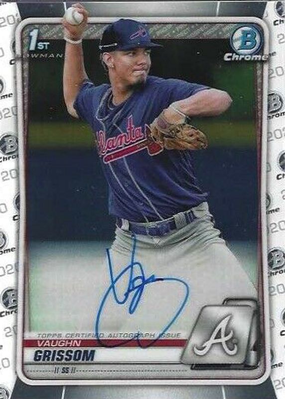 Vaughn Grissom's Baseball cards are available in at least 31 sets. Vaughn Grissom's biggest 7-day price movers are 2020 Bowman Chrome #CPA-VG Prospect Auto (1st), 2025 Topps Heritage #331 Chrome - Gold Refractor /50, and 2023 Topps Tribute #TA-VGR Autographs - Green /99.