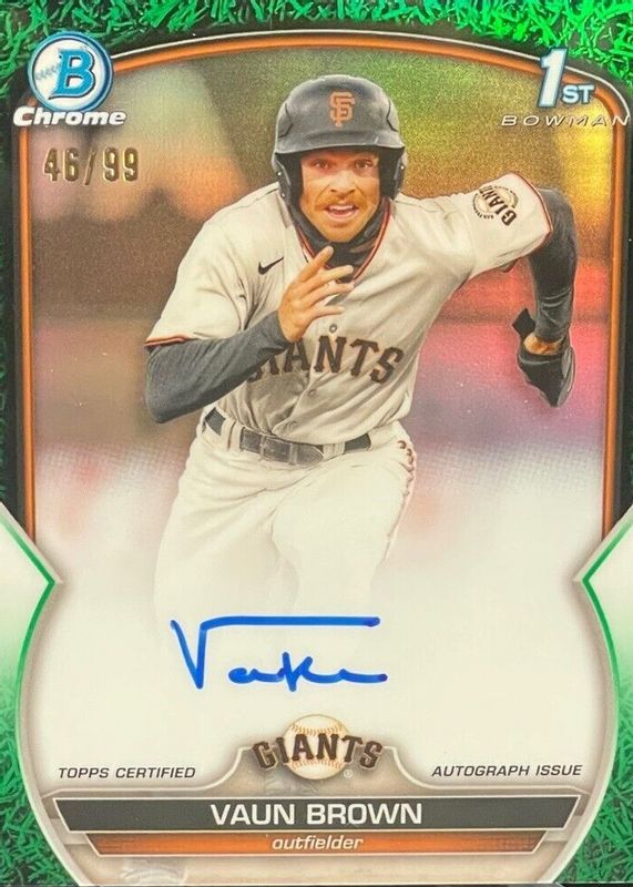 2023 BOWMAN CHROME VAUN BROWN CPA-VB 1ST GREEN GRASS REFRACTOR AUTO 86/99 GIANTS