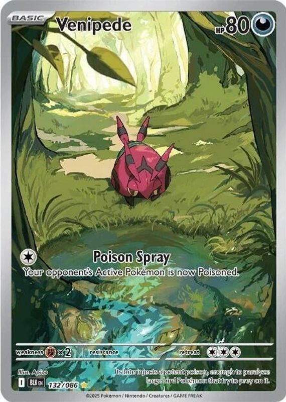 Pokemon TCG SV: Black Bolt Venipede 132/086 Illustration Rare NM