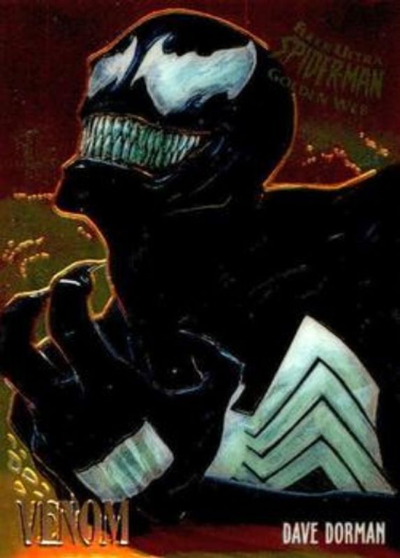 The Venom 1995 Fleer Ultra Spider-Man #8 Golden Web card is 1 of 20 Venom's card variations in the 1995 Fleer Ultra Spider-Man set being tracked by Sports Card Investor, including #108 Base, #134 Base, #60 Base, #83 Base, and #100 Base.
