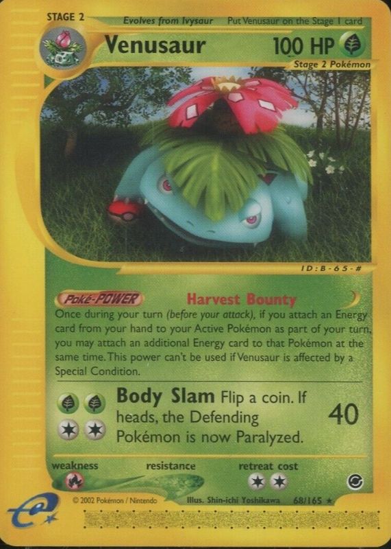 The Venusaur 2002 Expedition #068/165 Base card in Raw TCG (Near Mint) condition has moved up $3.49 (+21.2%) in the last 30 days and was last sold for $19.99 .