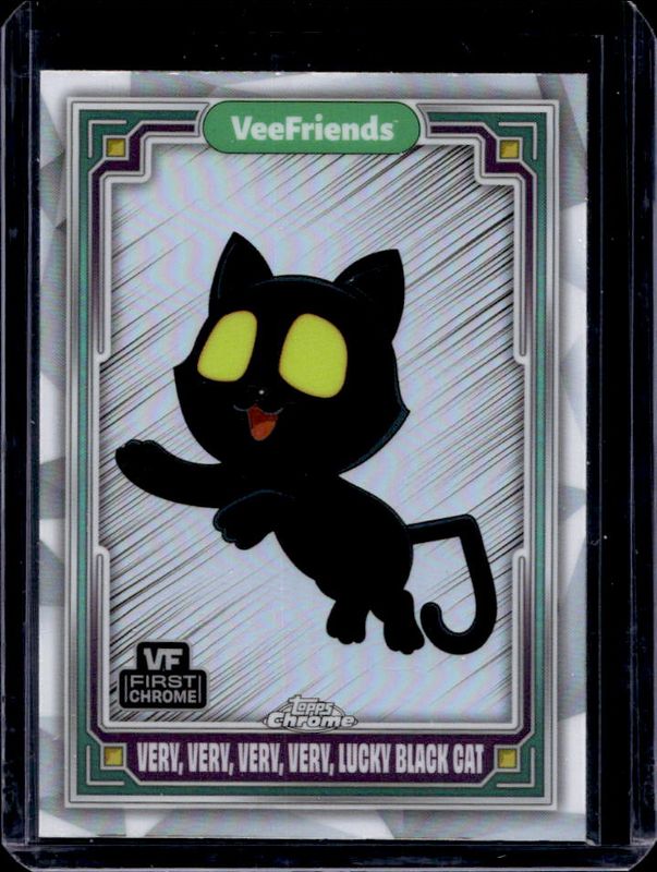 The Very, Very, Very, Very Lucky Black Cat 2025 Topps Chrome VeeFriends #3 Refractor card is 1 of 30 Very, Very, Very, Very Lucky Black Cat's card variations in the 2025 Topps Chrome VeeFriends set being tracked by Sports Card Investor, including Base, Yellow Refractor, Shimmer Refractor /250, RayWave Refractor /199, and Wave Refractor /150.