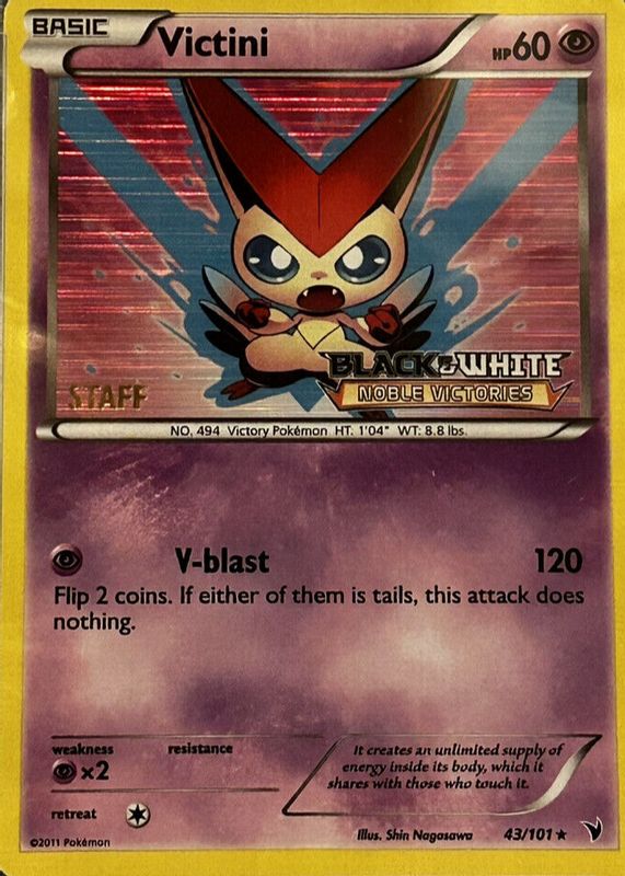 Victini 2011 Black & White: Noble Victories #043/101 Promo (Prerelease - STAFF) RAW TCG (NEAR MINT) Price Guide