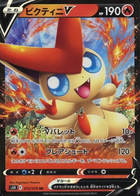 The Victini V 2021 Japanese Sword & Shield: Rapid Strike Master #012/070 Double Rare card in Raw TCG (Near Mint) condition has moved up $0.51 (+34.5%) in the last 30 days and was last sold for $1.99 .
