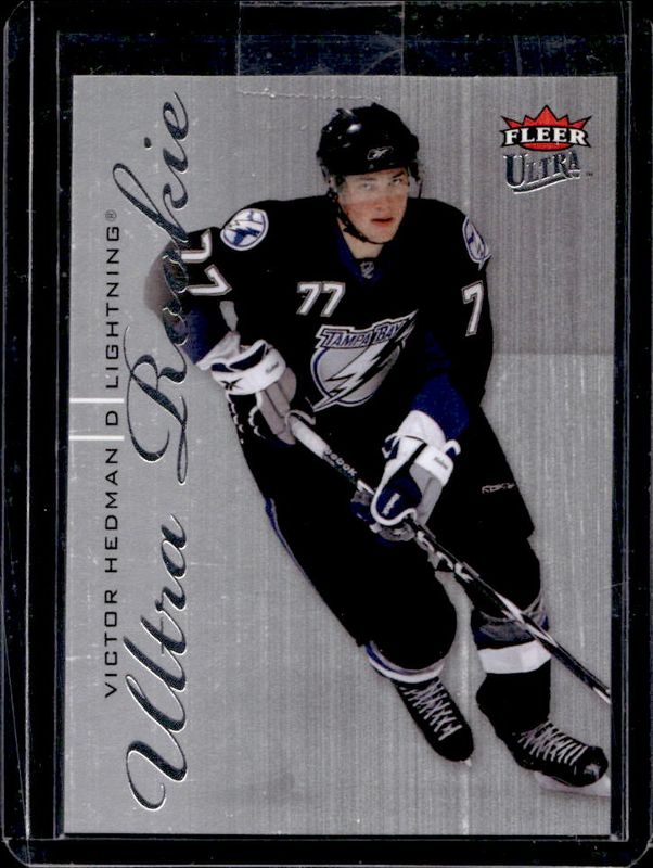 The Victor Hedman 2009 Fleer Ultra #253 2009 Fleer Ultra Rookie card is 1 of 3 Victor Hedman's card variations in the 2009 Fleer Ultra set being tracked by Sports Card Investor, including Gold Medallion, and Ice Medallion /25.